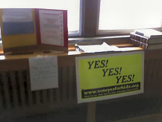 lounge where Yes, Yes, Yes lawn signs are being passed out.